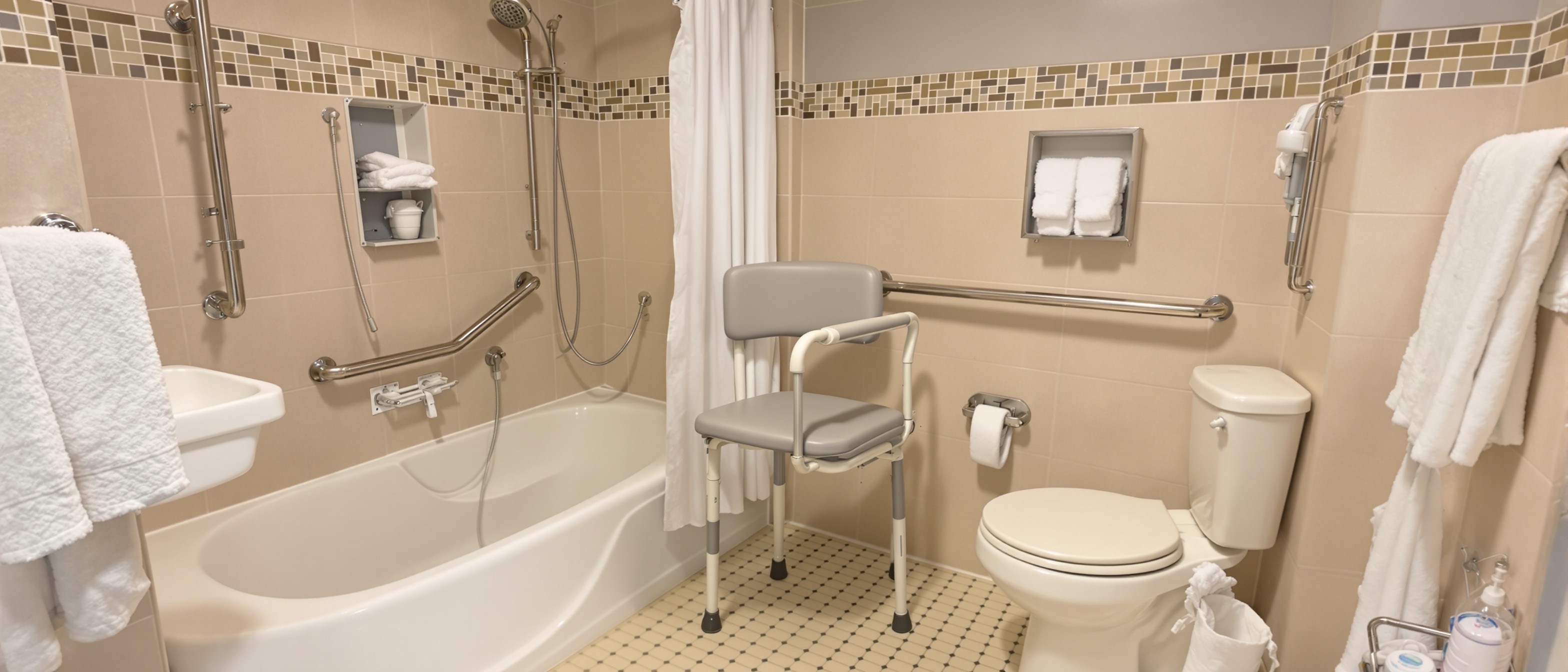 - Grab bars – installed in studs, not suction cups